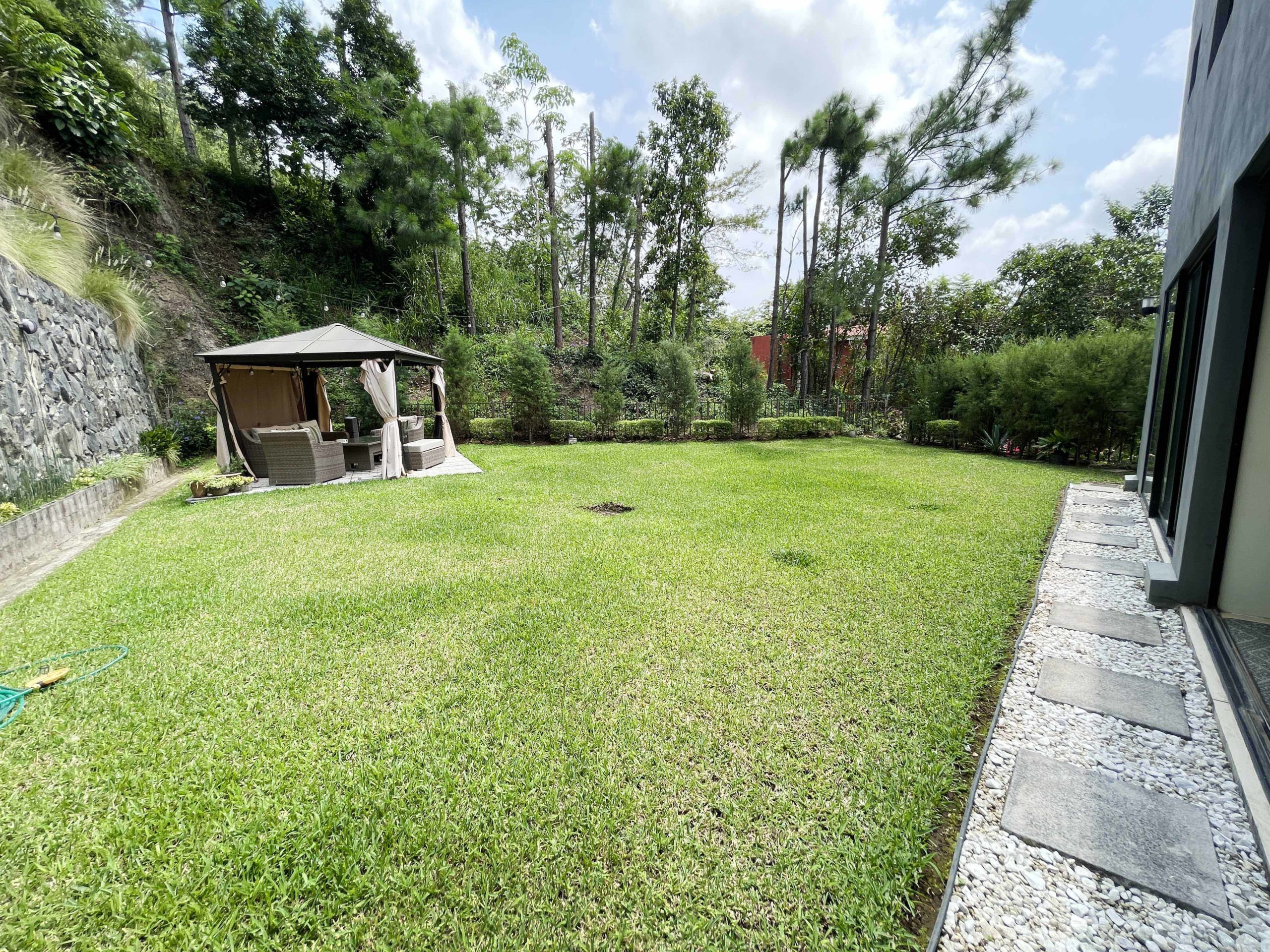 -Jardín amplio y agradable con pergola
