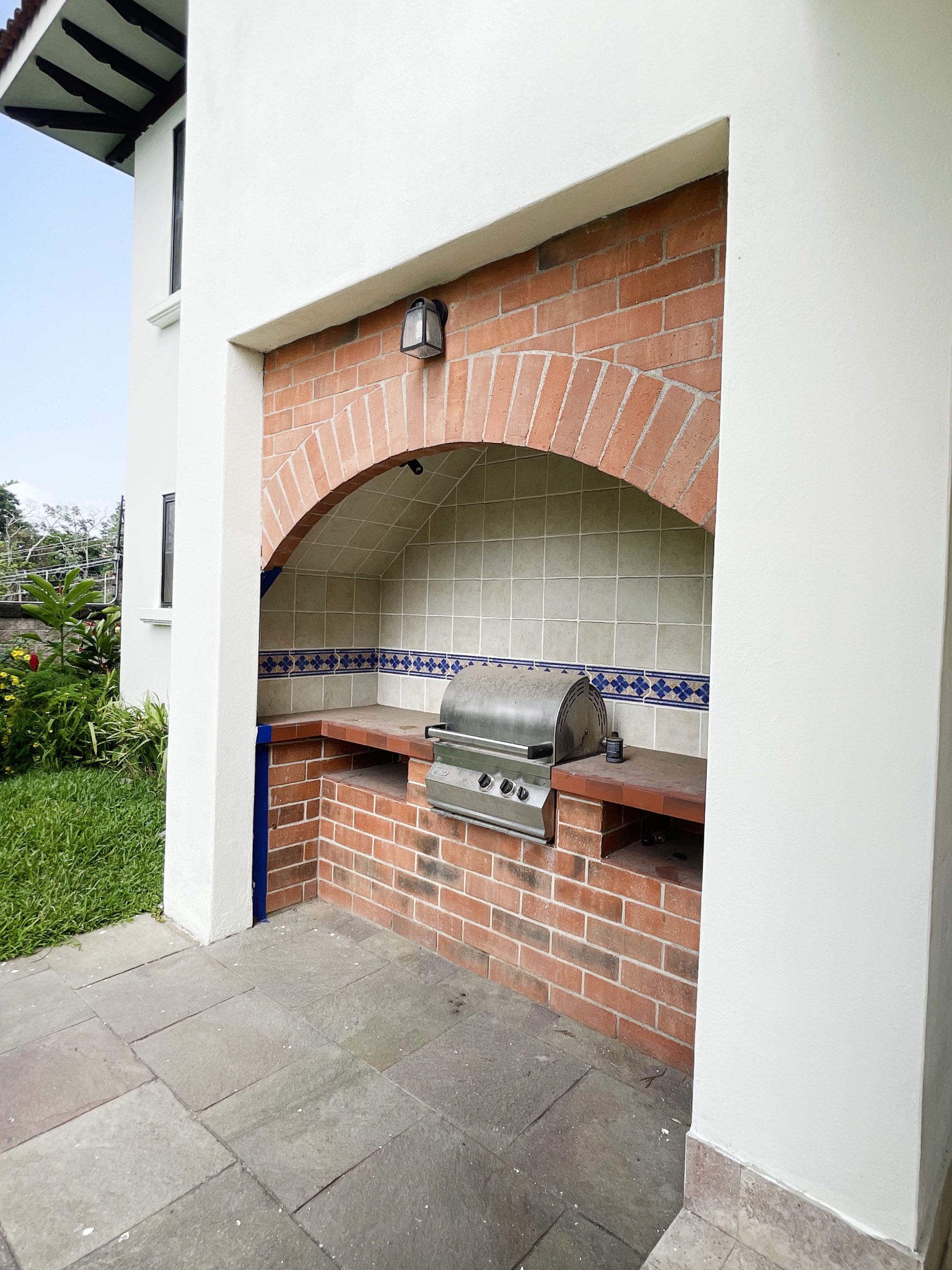 -Terraza amplia con vista al jardin, en donde se encuentra una bbq empotrada de metal