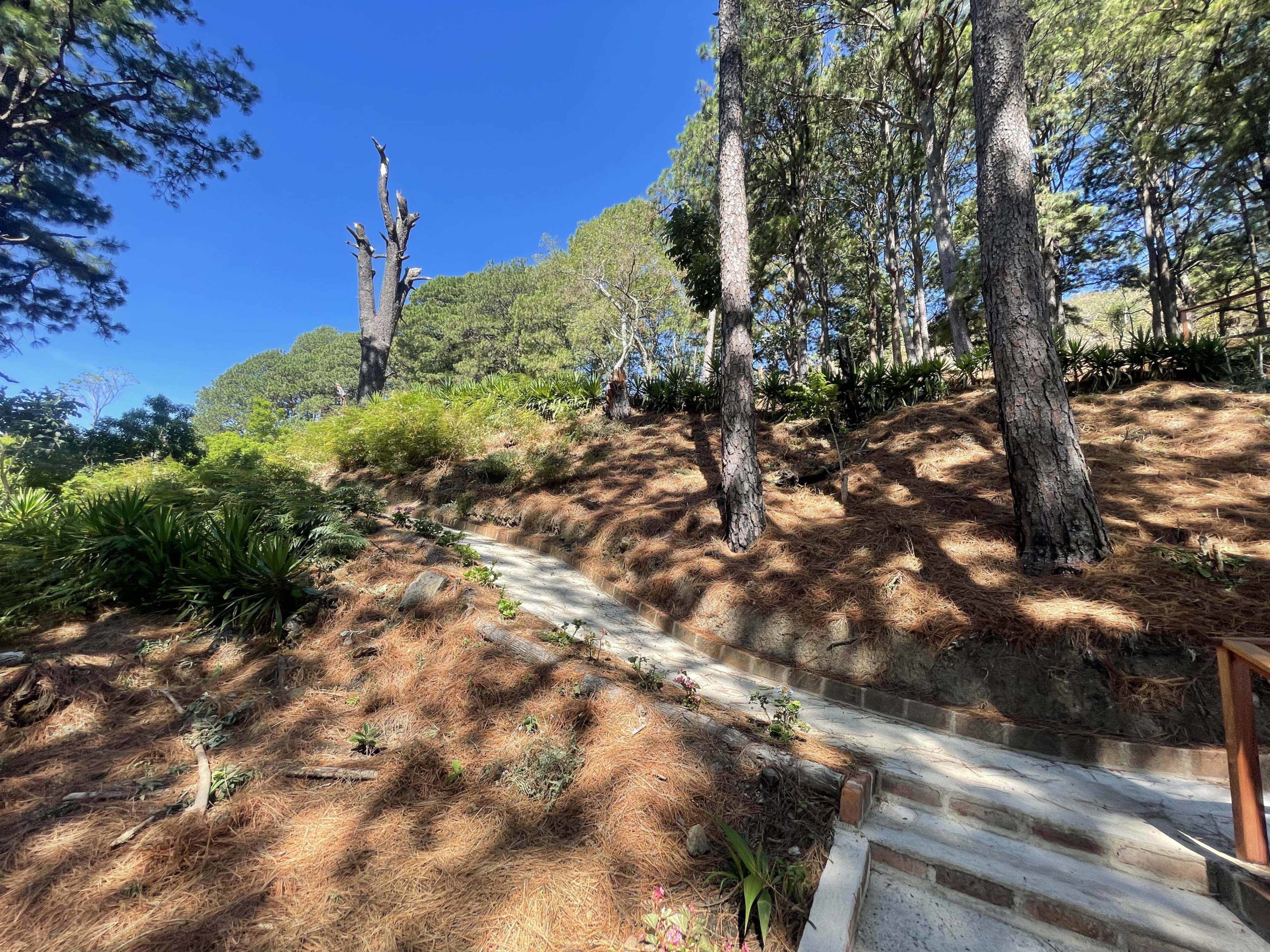 Hermoso terreno ubicado en una residencial carretera al volcán de San Salvador. En una extensión de 5,000 v2, de topografía inclinada con una hermosa vista hacia la ciudad, lleno de pinos, flores, aire puro, este terreno ya cuenta con senderos para caminar, un deck, una cisterna con captación de lluvias y un baño.